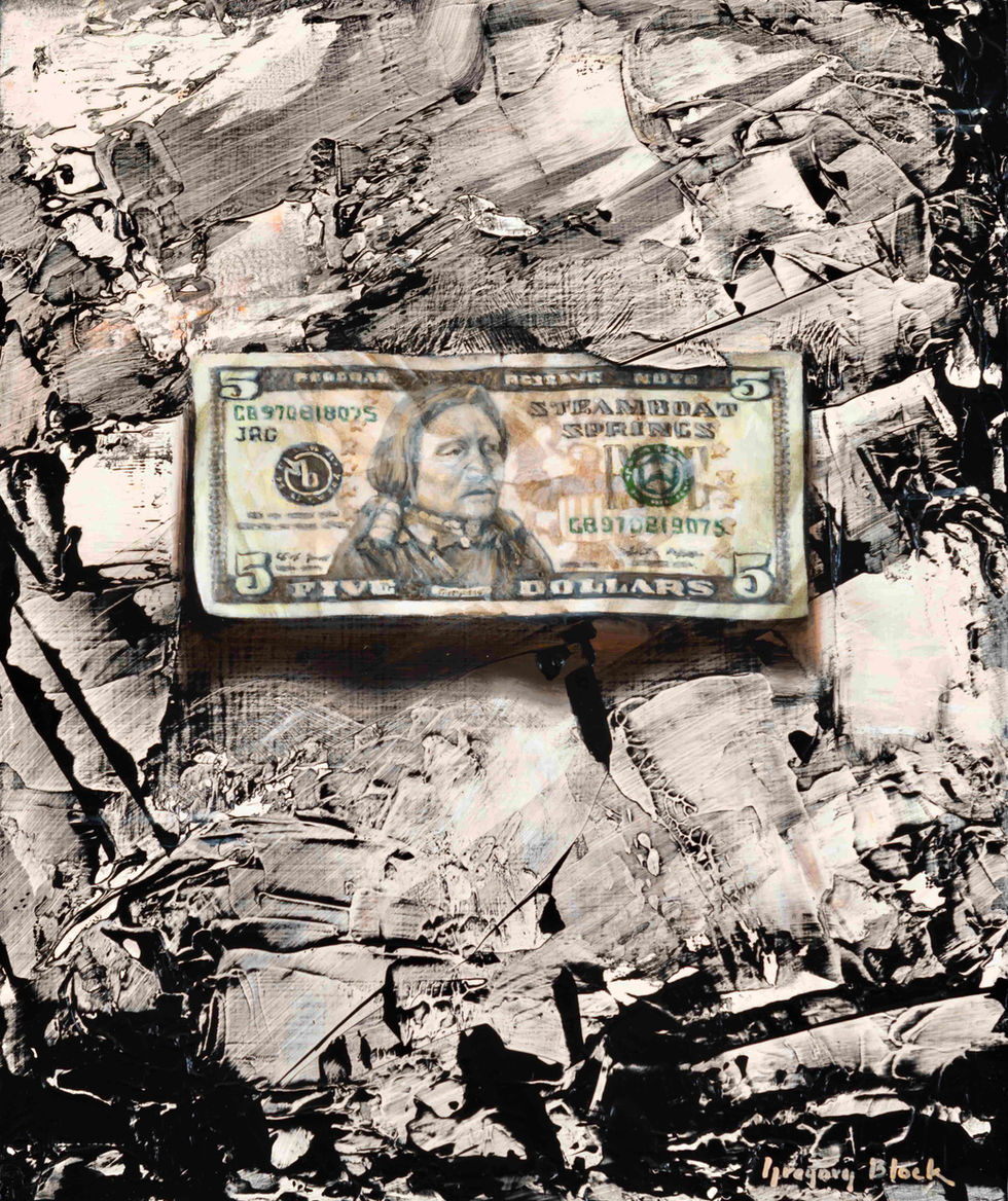 As a child growing up several miles south of Steamboat Springs near the small mining and ranching town of Oak Creek, Block’s work is fundamentally informed by the deep-rooted ethos of the Mountain West. His paintings reflect the often rugged yet nuanced stories of his friends and neighbors, and provide a present-day portrayal of a history that reaches back generations if not millennia.